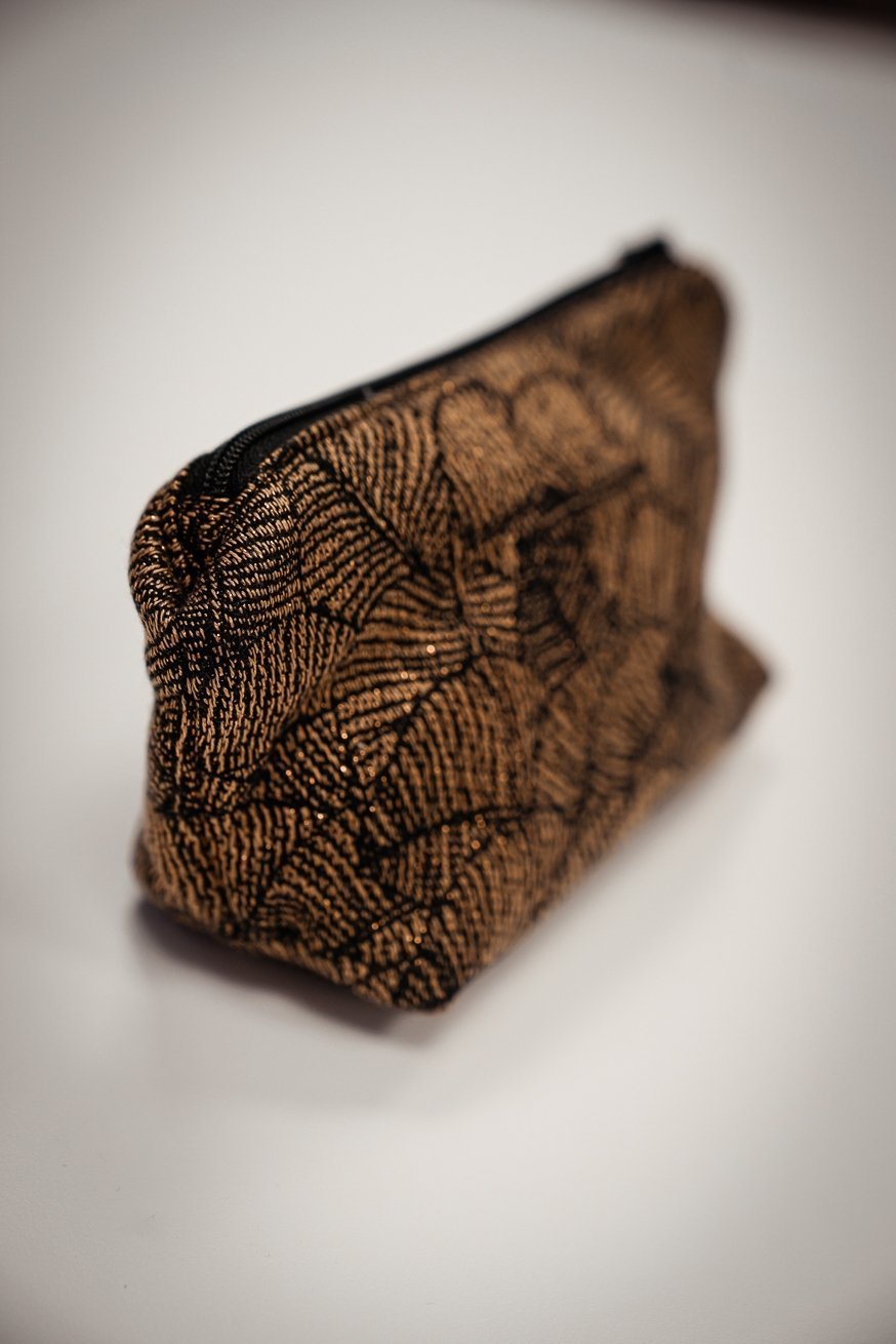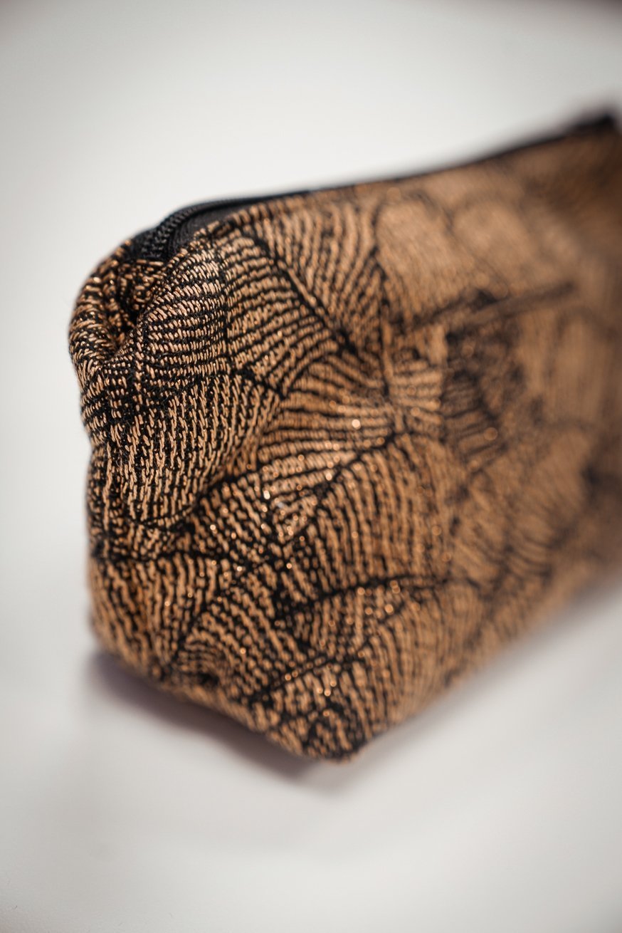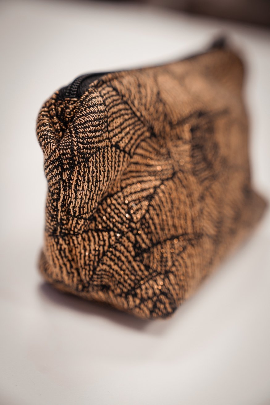 el KOKADI Neceser, por supuesto de tela tipo bandolera. Plumas encantadoras, sobre un fondo dorado mágico. Nuestro diseño Leaves Lynne realmente cautiva a todos.