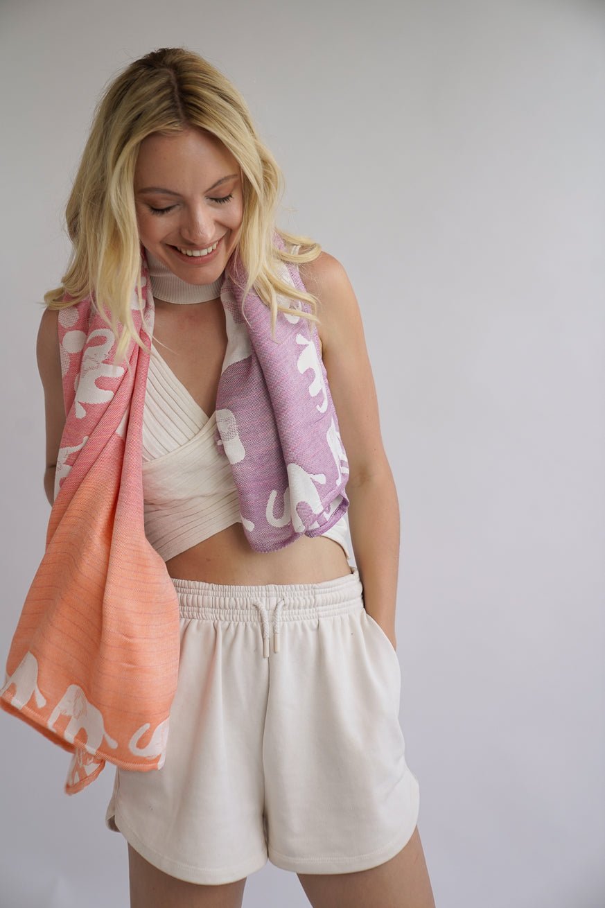 Tissé en quatre couches, ce doudou est parfait comme couverture d'été légère, qui emmagasine la chaleur grâce aux quatre couches ! Idéale pour le temps qu'il fait ❤ Et aussi pour maman : une méga écharpe qui crie été et fun ! 😎