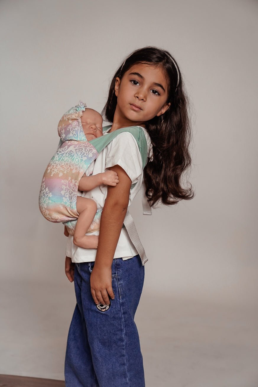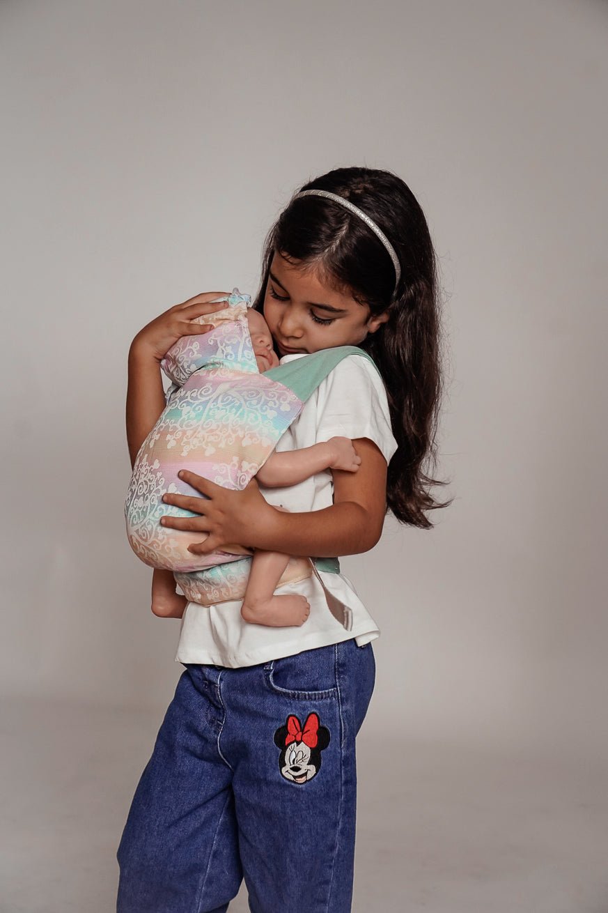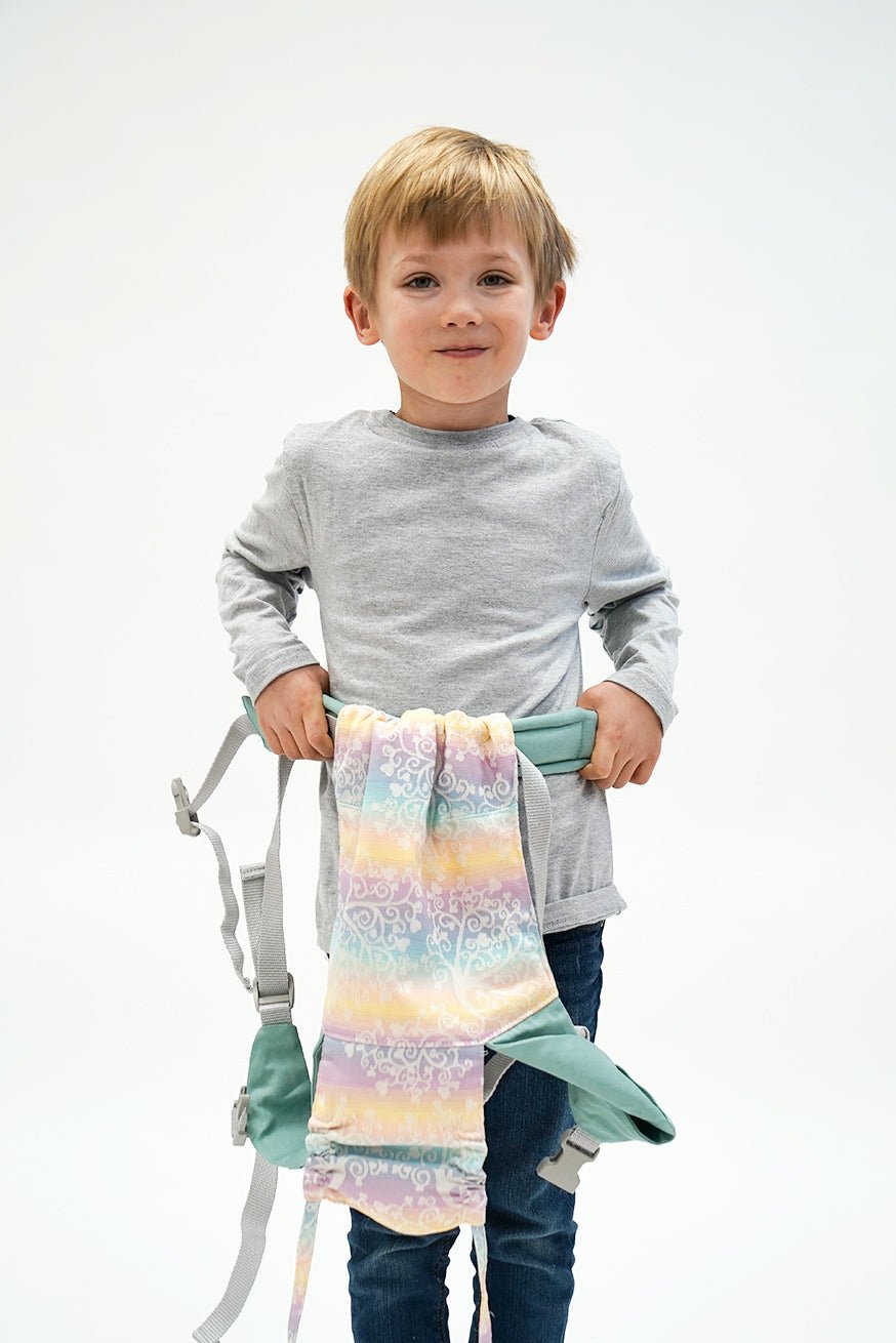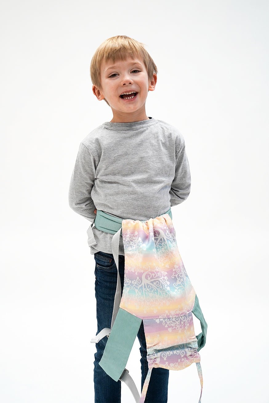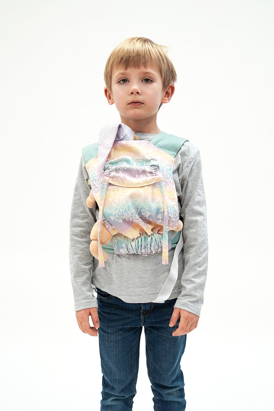 Liksom alla våra bärprodukter är bakpanelen gjord av vävd bärare. Mini -flipens höftbälte är som Flip den stora justerbara. Bryggbredden kan ställas in på ett frysande sätt med mini -vändningen. Bryggbredden kan ställas in kontinuerligt och barns lek med Mini Flip. Dockor och kudda leksaker upp till 45 cm passar helt enkelt in i KOKADI Mini Flip.
